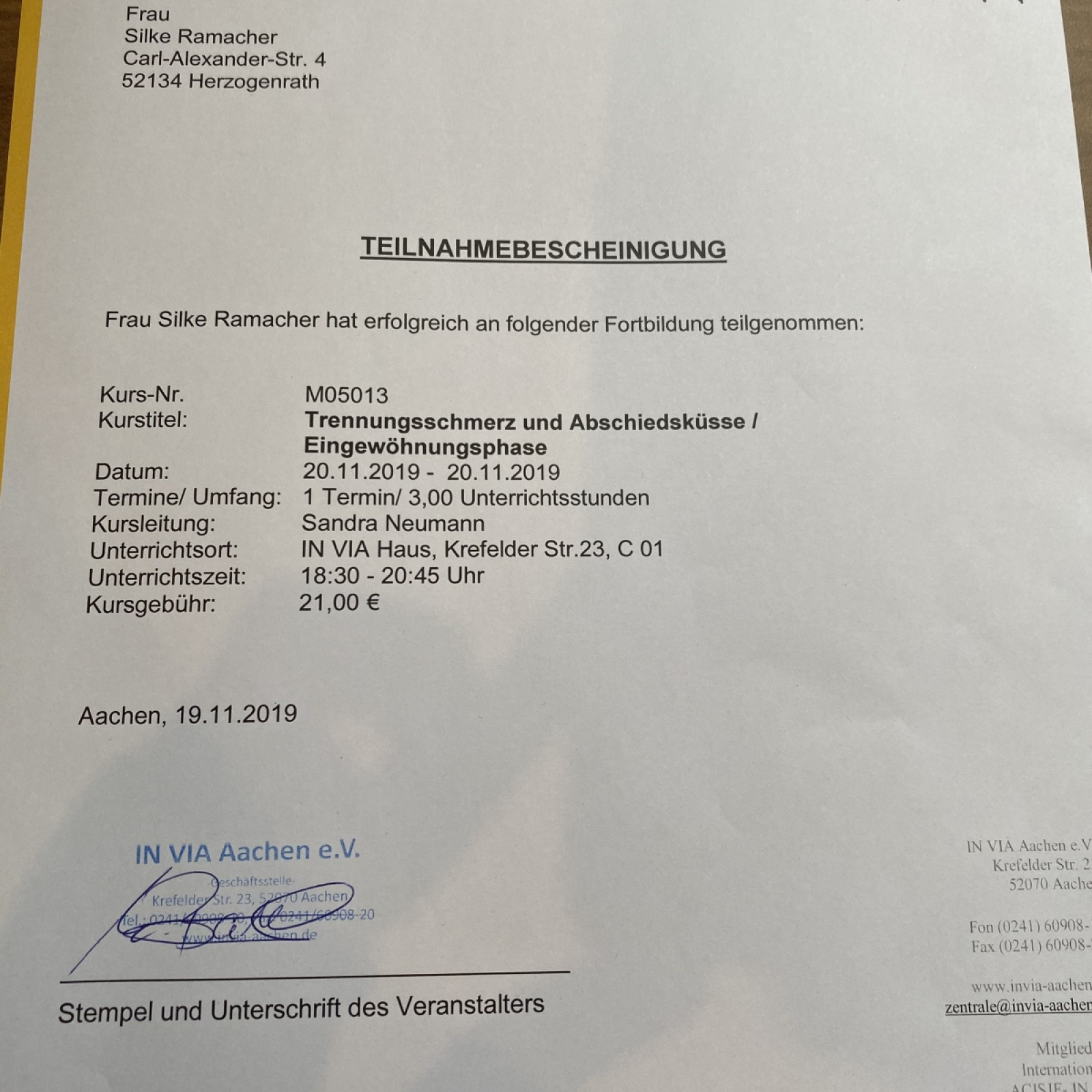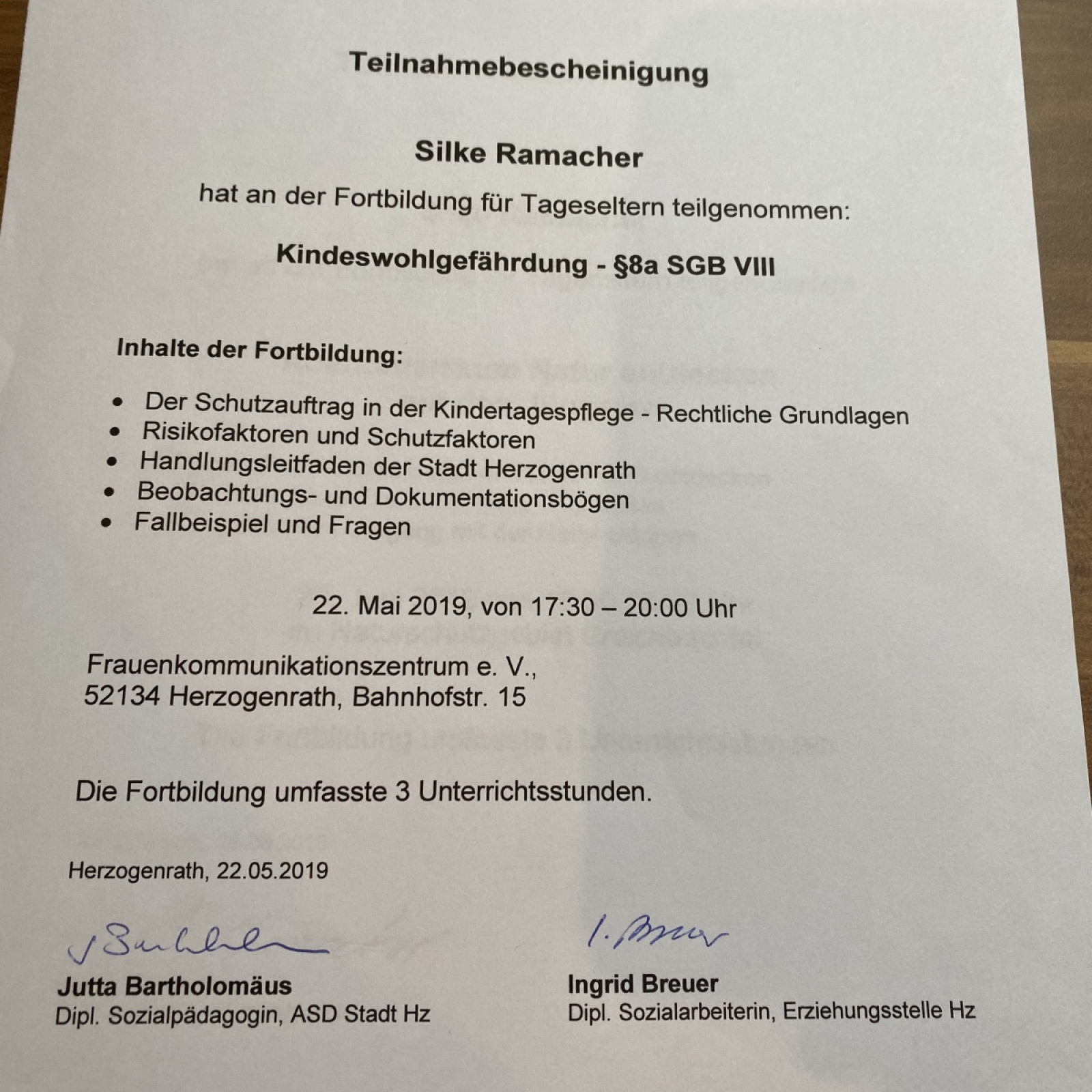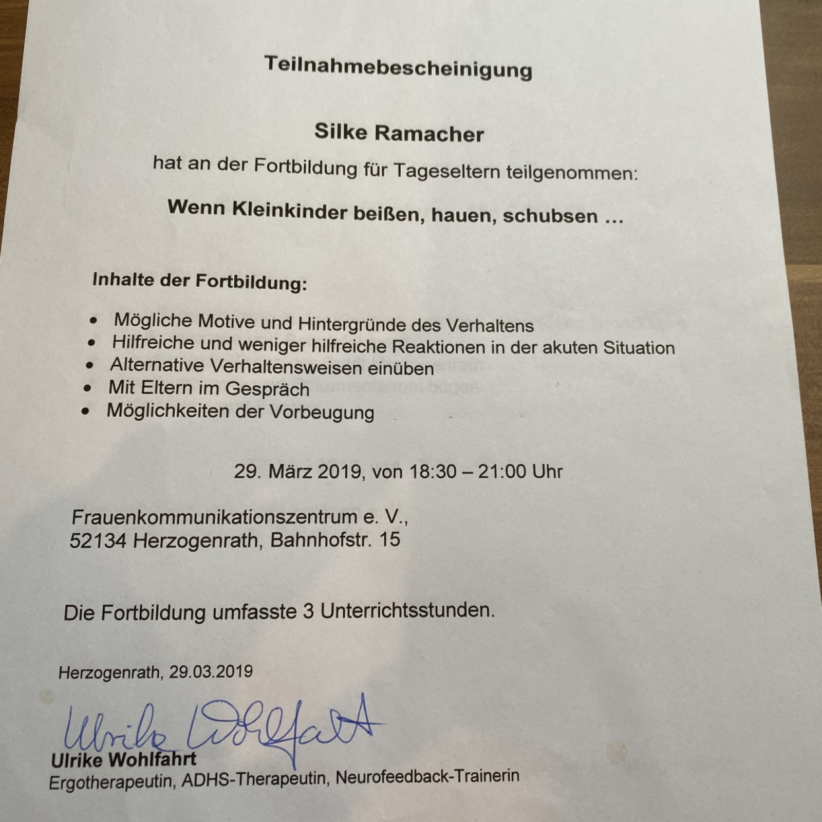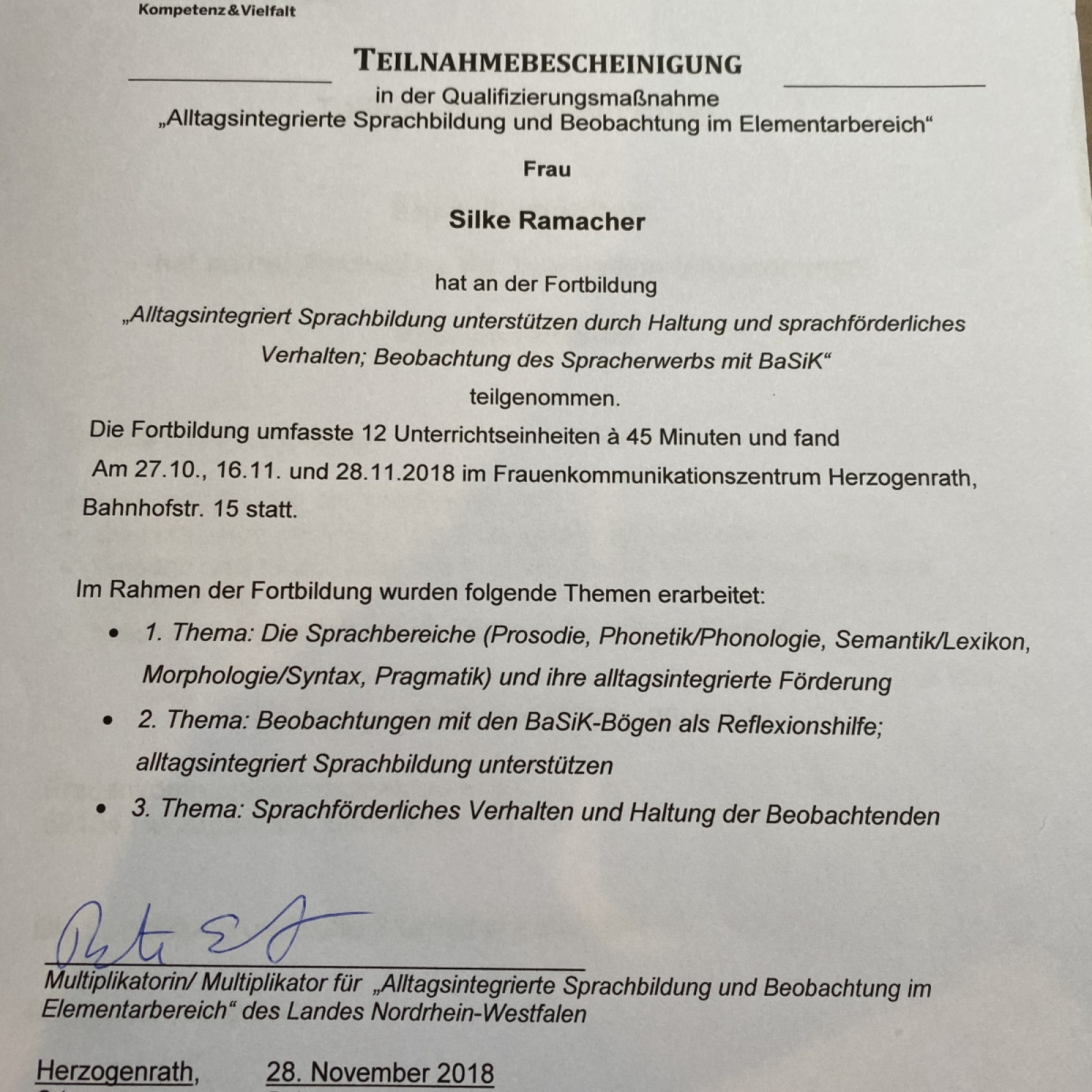 Zertifikate/Fortbildungen